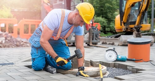 Steinsetzer im Bereich Tiefbau führen Arbeiten bei der Herstellung von Pflasterflächen, Wegen, Einfahrten, Bordsteinen und anderen...